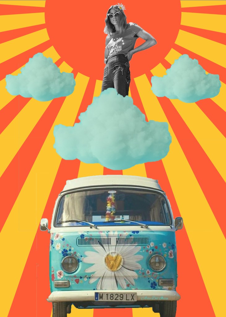 This digital collage is inspired by the 1960s, 1970s, and 1980s. Each collage represents a different decade with images and feelings that are associated with society at the time.