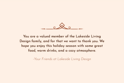 Lakeside Living & Design has sent various appreciation and holiday gifts to their clients. I designed cards to accompany these gifts and gave them a touch of personality.